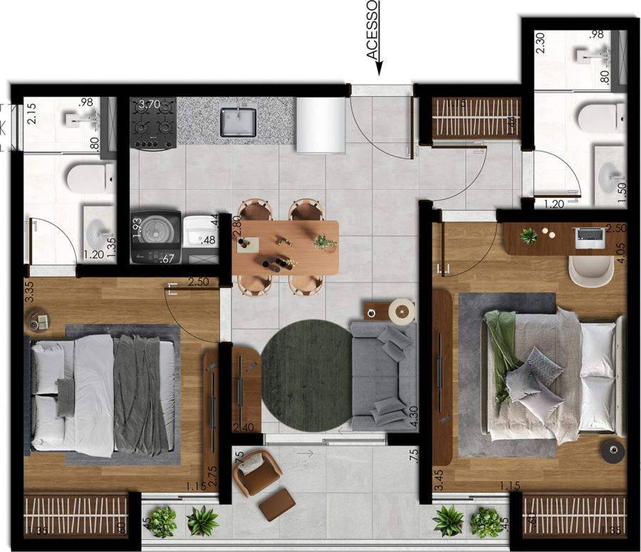 - Área Privativa: 47,80 m²